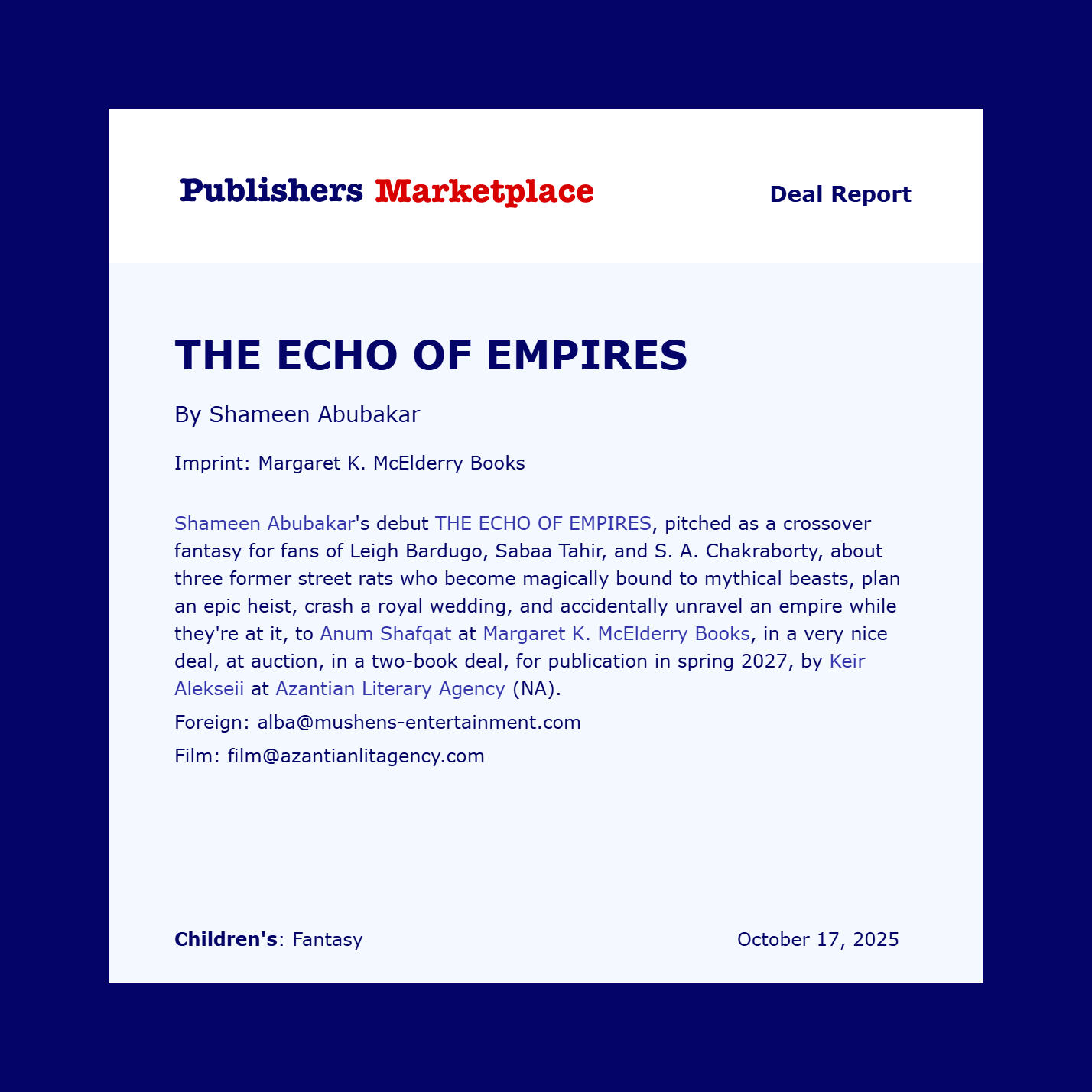 Currently, Keir is open to SFFH in Adult, YA, and MG, as well as historical YA and MG.As a neurodivergent, queer woman of color, Keir is invested in discovering engaging work with similar representation, and is passionate about creating space for voices not often recognized. She is especially interested in stories from BIPOC who are born and raised in the Global South.Please send me:- Found family